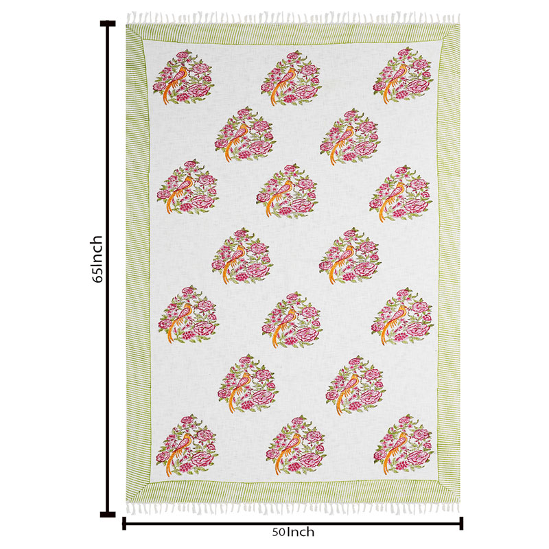 White (70 X 50) Cotton Hand Block Print Soffa Throw