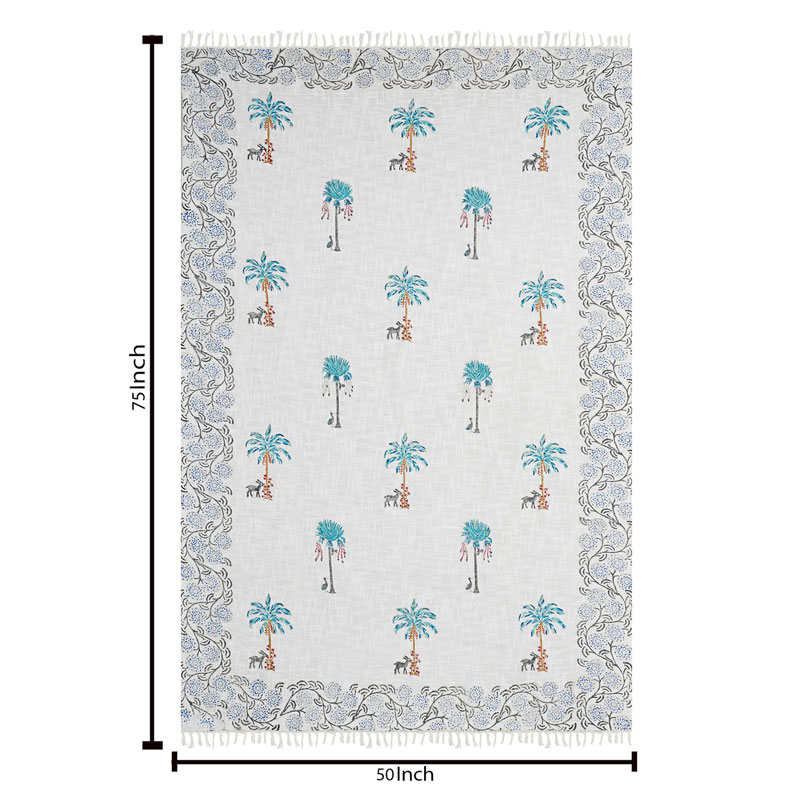 White (70 X 50) Cotton Hand Block Print Soffa Throw