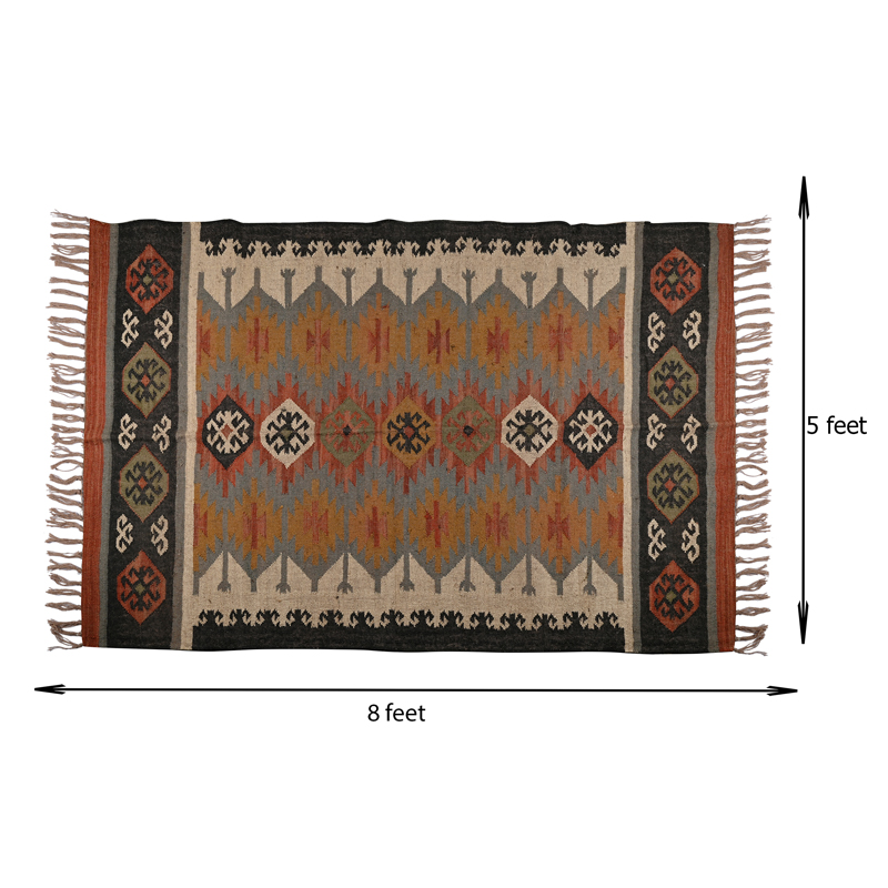 Ethnic Wool Rug Featuring Rich Colors and Classic Tribal Motifs