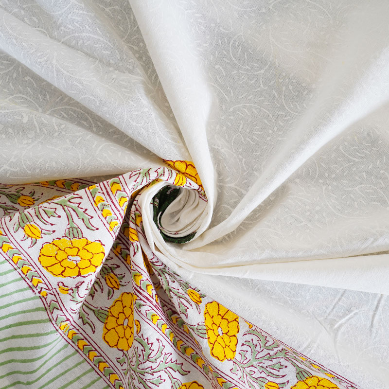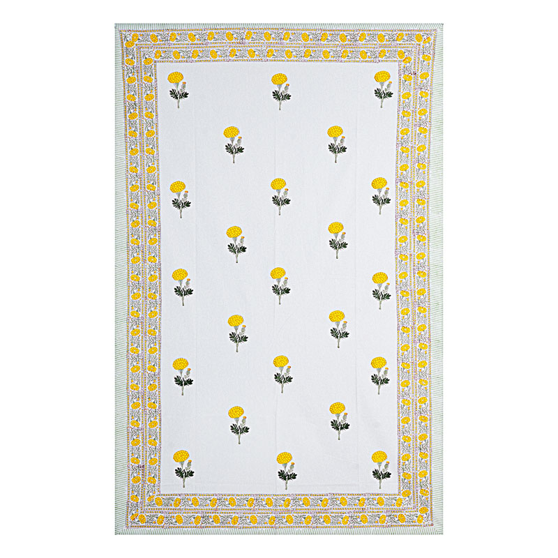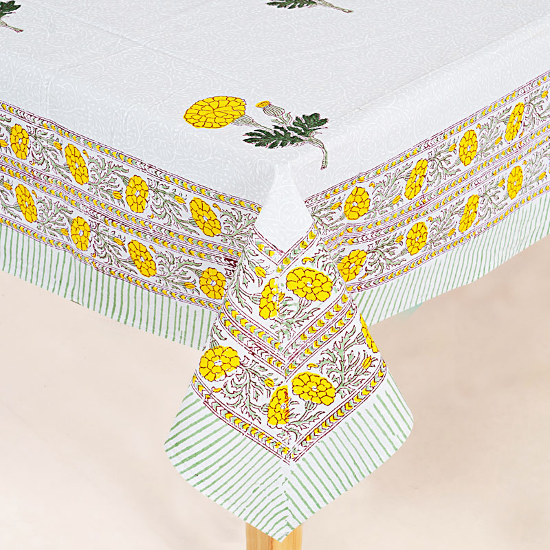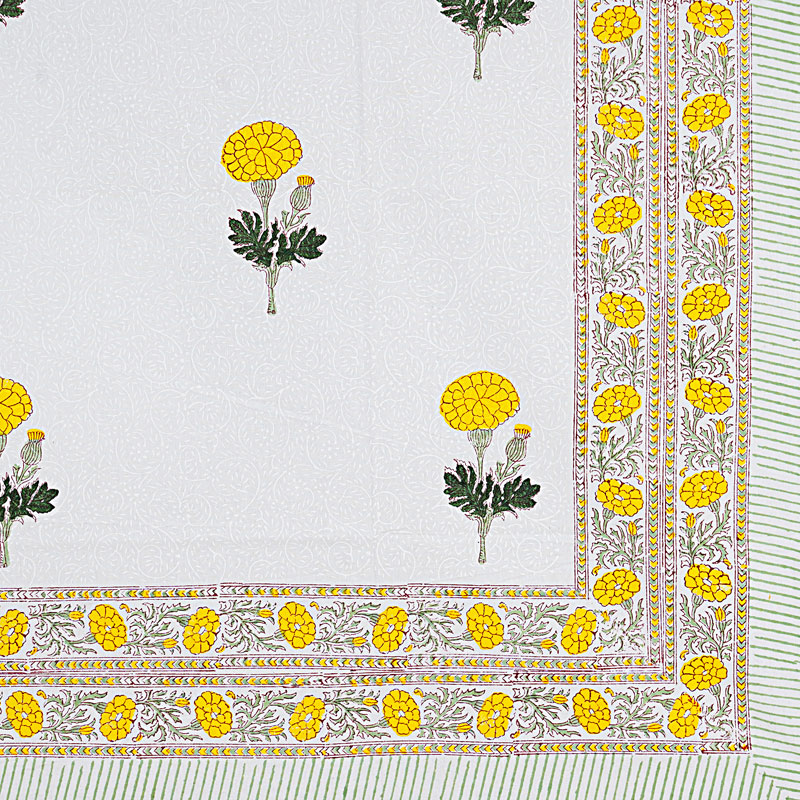 White and Yellow (90 X 60) Cotton Hand Block Print Table Cloth