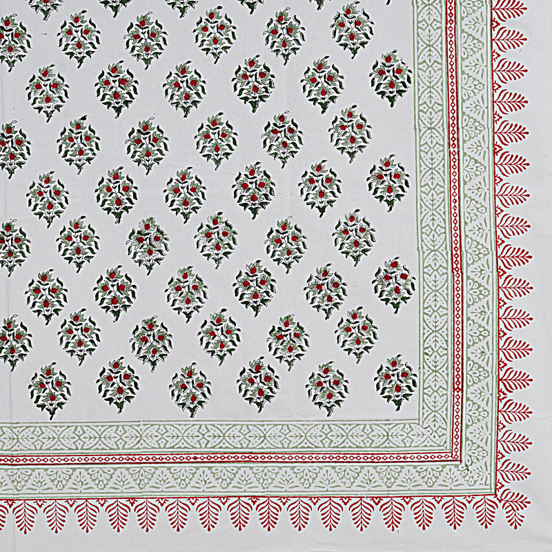 White and Red (90 X 60) Cotton Hand Block Print Table Cloth
