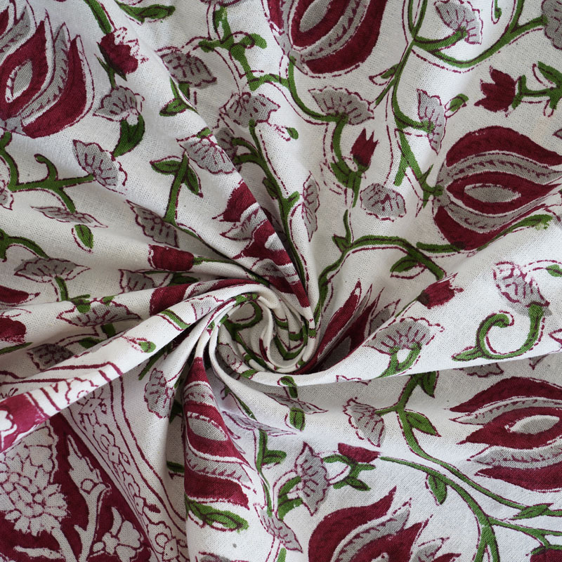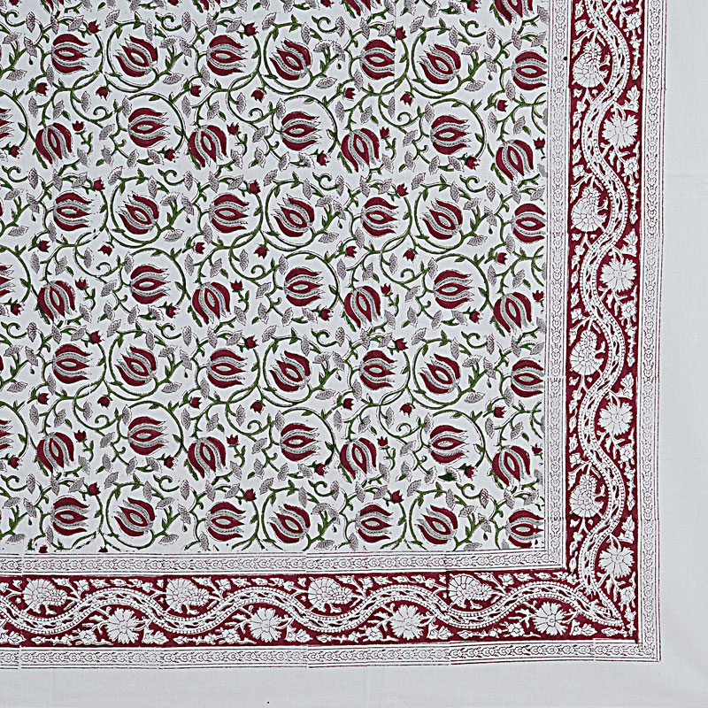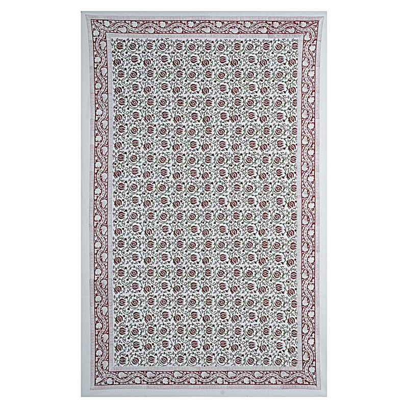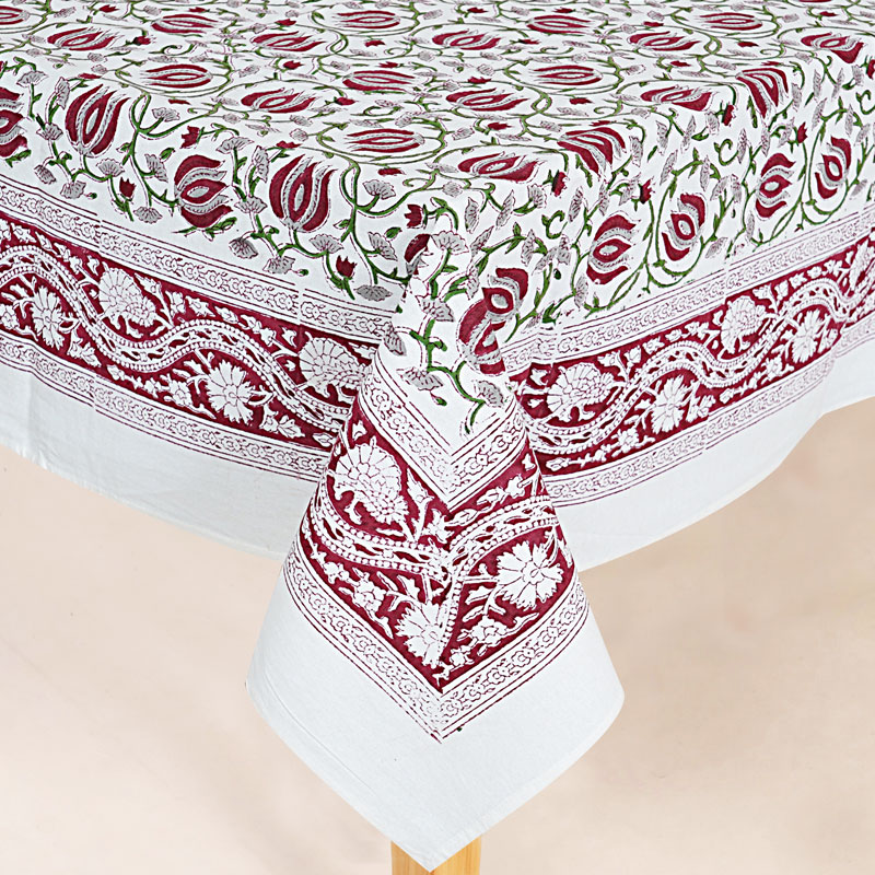 White and Maroon (90 X 60) Cotton Hand Block Print Table Cloth